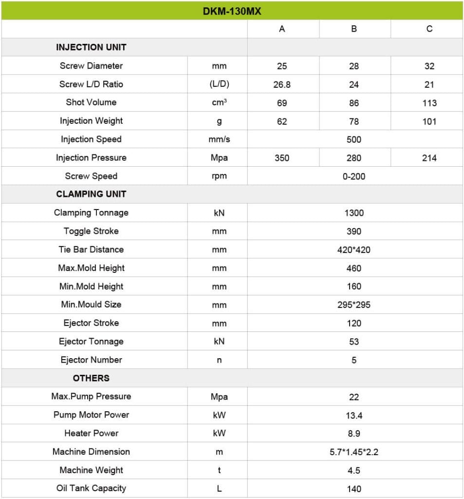 DKM ofrece precios competitivos para las máquinas de la serie DKM-DH, lo que las convierte en una opción asequible para empresas de todos los tamaños. Además, el rendimiento de alta velocidad y alta eficiencia de la máquina de moldeo por inyección puede reducir los costos de producción y mejorar la rentabilidad con el tiempo.