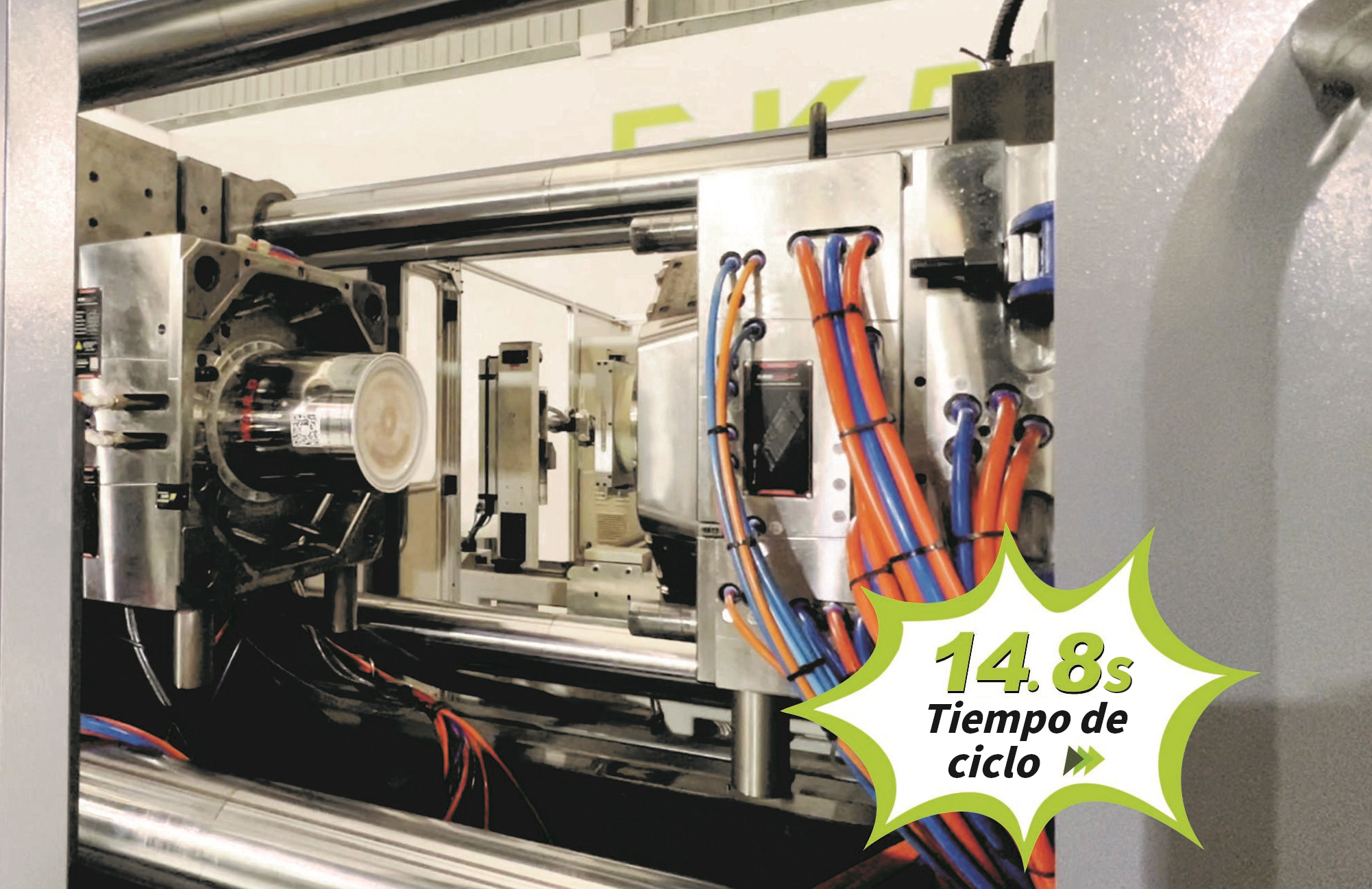 Este sistema de moldeo por inyección destaca por tres puntos fuertes fundamentales, adaptados a la producción de cubos de pintura de 20 litros: